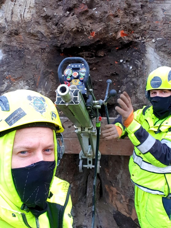 Основные задачи по алмазному бурению – отверстия в буронабивных сваях строящейся станции Курская, Московской железной дороги и бурение фундаментов в Москва Сити. На обоих объектах бурили под геологию для усиления грунта. Отверстия Ф200-225мм. глубиной 1-1,2 метра под углом.