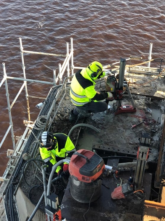 В октябре 2020 года нами выполнено два выезда в Архангельск для производства работ по алмазному бурению в опорах Северодвинского моста.