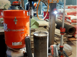 • профессиональное оборудование. Мощные, только 3х фазные установки для бурения на большую глубину. Обычно мы используем установки HILTI DD500 на сверхнадежной станине CEDIMA P6000 и промышленные пылесосы HUSQVARNA, способные забирать пыть с больших глубин. Стоимость одного комплекта оборудования для сухого бурения начинается от 1.5 млн. рублей.